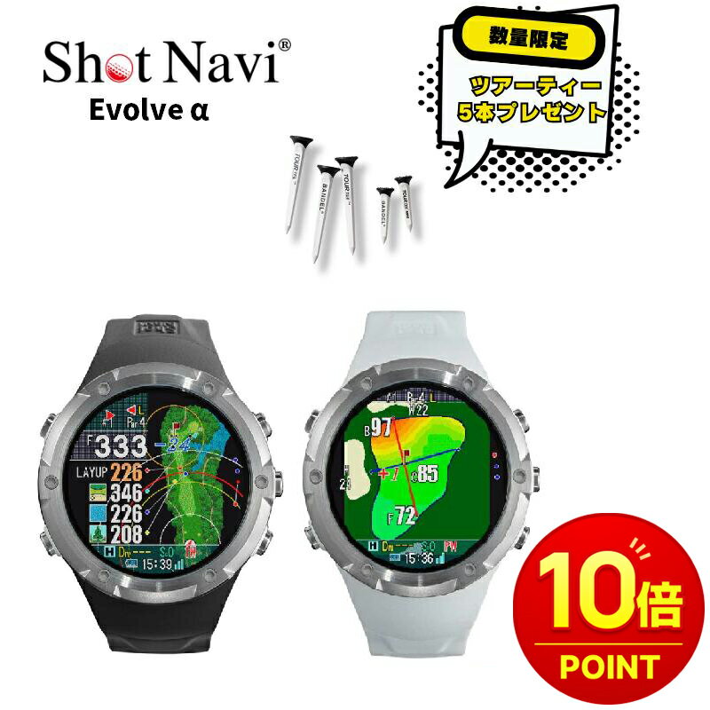 【数量限定ツアーティー付き】【楽天ポイント10倍】SHOT NAVI ショットナビ Evolve α日本正規品 ゴルフ 距離測定器 距離計 腕時計型 最新モデル ゴルフ用 充電器付属 Dynamic GreenEye 人気商品 レイアップナビ