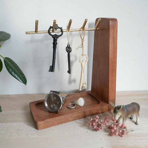 『 アルテン キースタンド 』玄関 鍵 収納 置型 キーボックス キー収納 インテリア 置物 トレイアクセサリートレイ小物 雑貨 置き場 トレイ おしゃれ かっこいい 木製 アイアン ナチュラル アンティーク調 金色 ゴールド 4本 スタンド式 鍵 吊るす 引っ掛ける